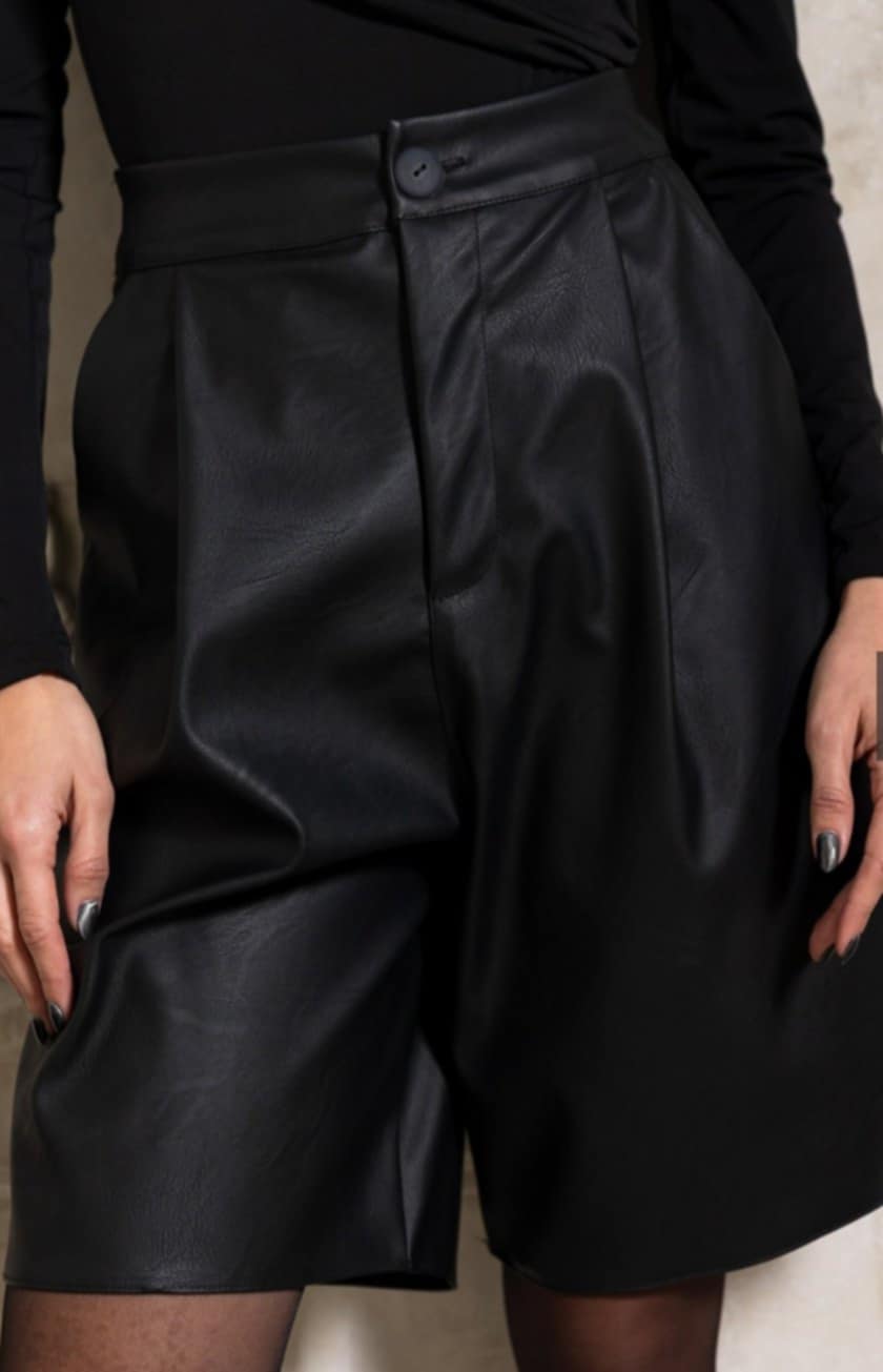 Βερμούδα δερματίνη με πιέτες Μαύρο